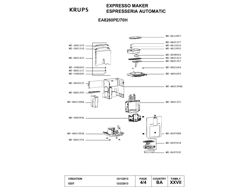 Запчасти для кофемашины Krups EA8260PE/70H (EA8260PE-70H)