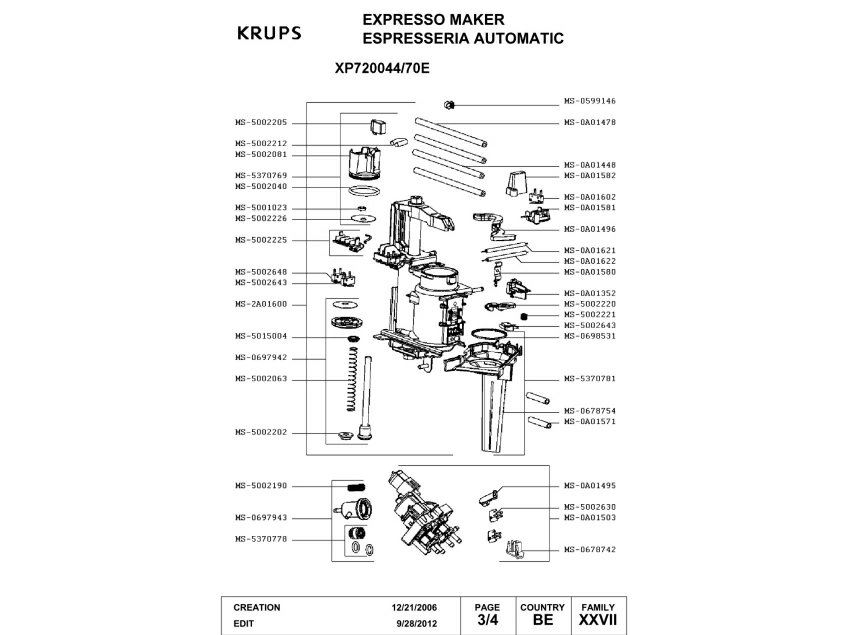 Запчасти для кофемашины Krups XP720044/70E (XP720044-70E-4)