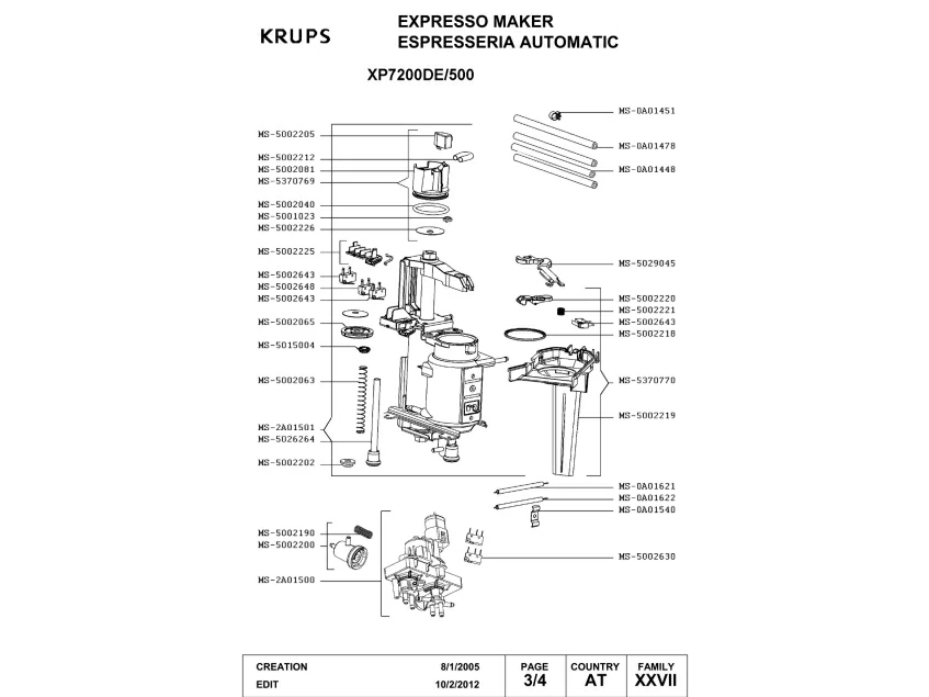 Запчасти для Krups XP7200DE/500 (XP7200DE-500-4)