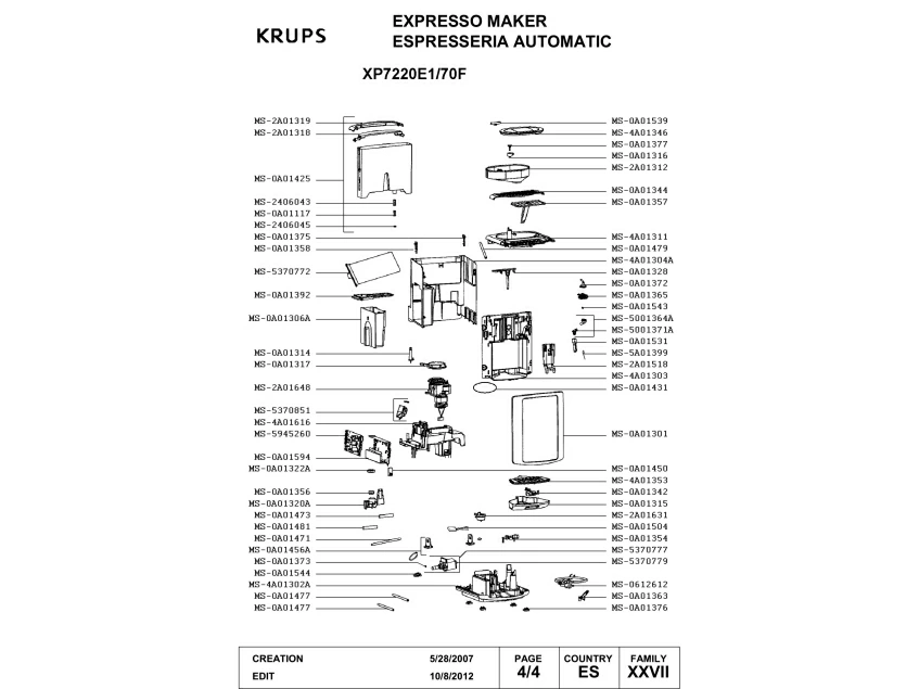 Запчасти для кофемашины Krups XP7220E1/70F (XP7220E1-70F)