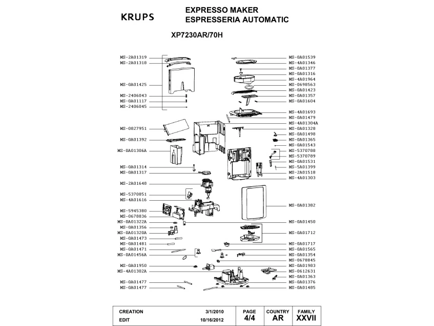 Запчасти для кофемашины Krups XP7230AR/70H (XP7230AR-70H)