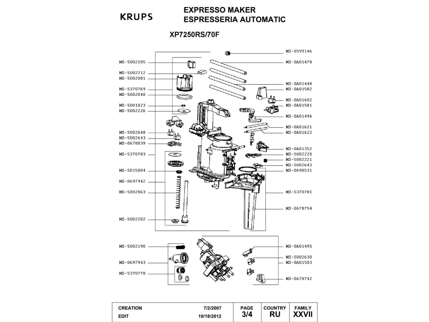 Запчасти для Krups XP7250RS/70F (XP7250RS-70F-4)