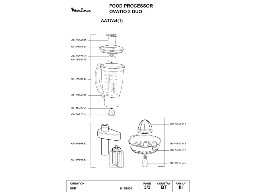 Запчасти для кухонного комбайна Moulinex AAT7A4(1) (AAT7A4(1)-3)