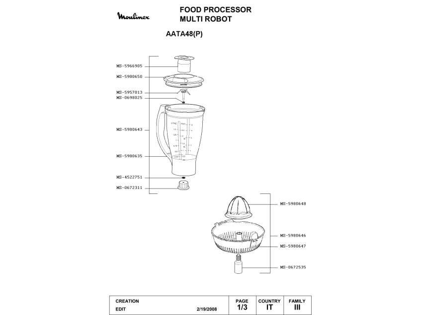 Запчасти для кухонного комбайна Moulinex AATA48(P) (AATA48(P)-1)
