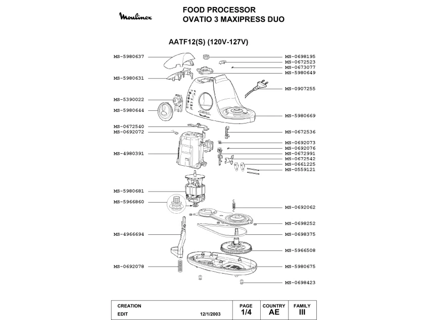 Запчасти для кухонного комбайна Moulinex AATF12(S) (AATF12(S)-1)