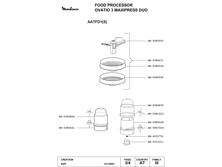 Запчасти для кухонного комбайна Moulinex AATFD1(S) (AATFD1(S)-3)