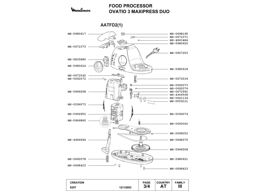 Запчасти для кухонного комбайна Moulinex AATFD2(1) (AATFD2(1)-3)