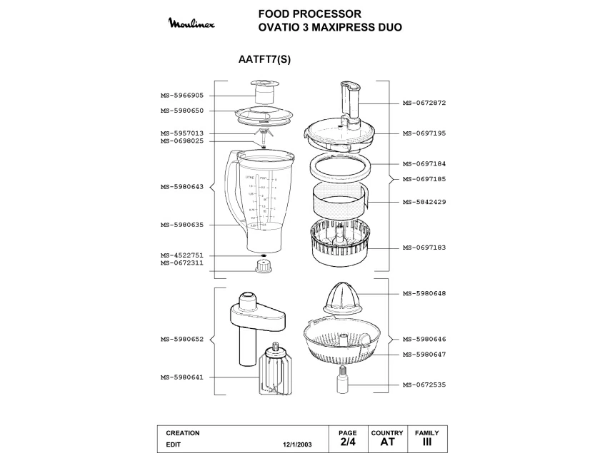 Запчасти для кухонного комбайна Moulinex AATFT7(S) (AATFT7(S)-2)