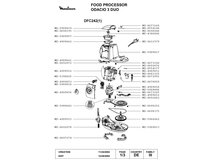 Запчасти для кухонного комбайна Moulinex DFC242(1) (DFC242(1)-1)