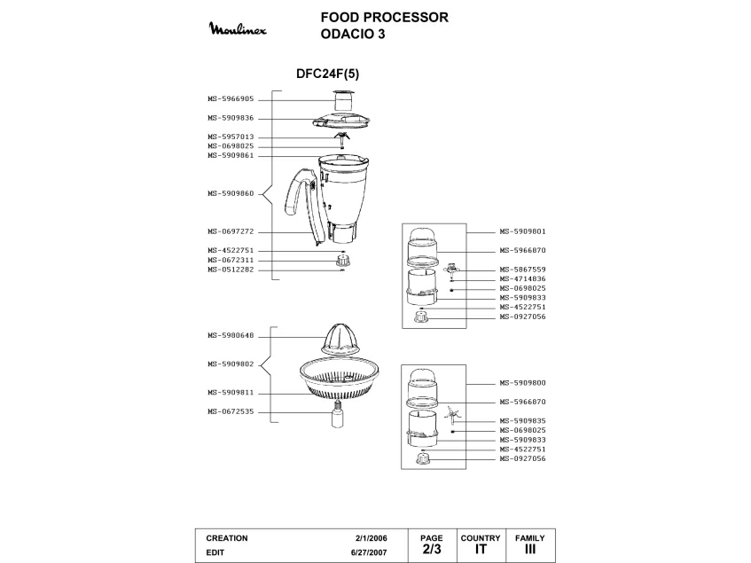 Запчасти для кухонного комбайна Moulinex DFC24F(5) (DFC24F(5)-2)