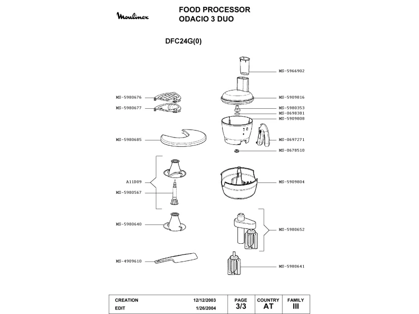 Запчасти для кухонного комбайна Moulinex DFC24G(0) (DFC24G(0)-3)