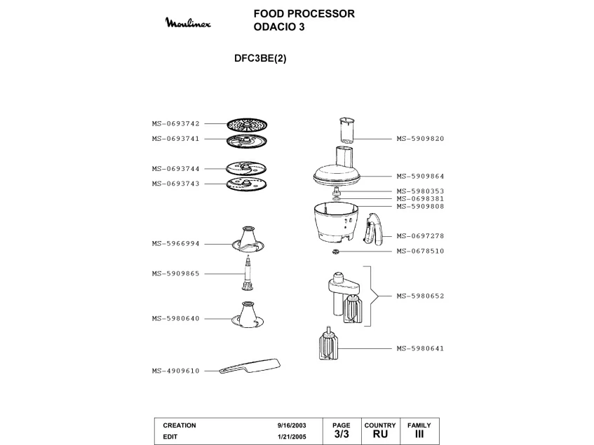 Запчасти для кухонного комбайна Moulinex DFC3BE(2) (DFC3BE(2)-3)