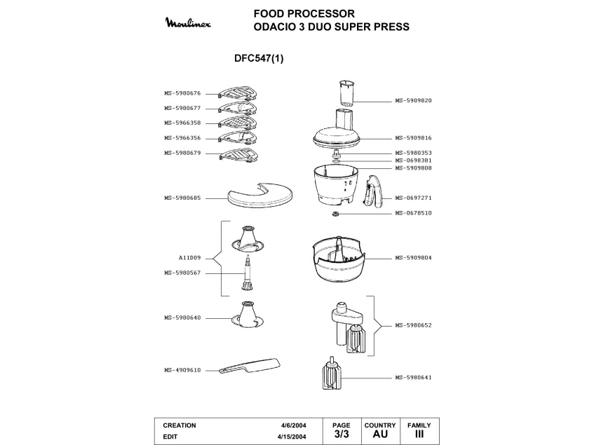 Запчасти для кухонного комбайна Moulinex DFC547(1) (DFC547(1)-3)