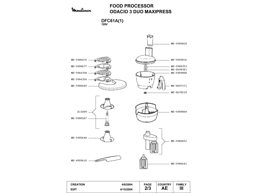 Запчасти для кухонного комбайна Moulinex DFC61A(1) (DFC61A(1)-2)