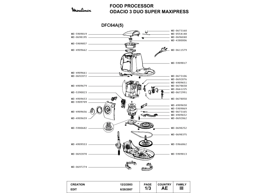 Запчасти для кухонного комбайна Moulinex DFC64A(5) (DFC64A(5)-1)