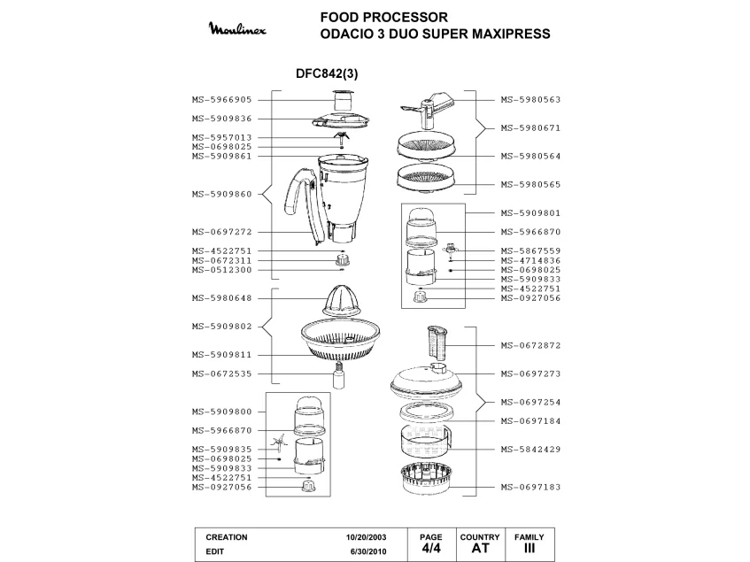 Запчасти для Moulinex DFC842(3) (DFC842(3)-4)