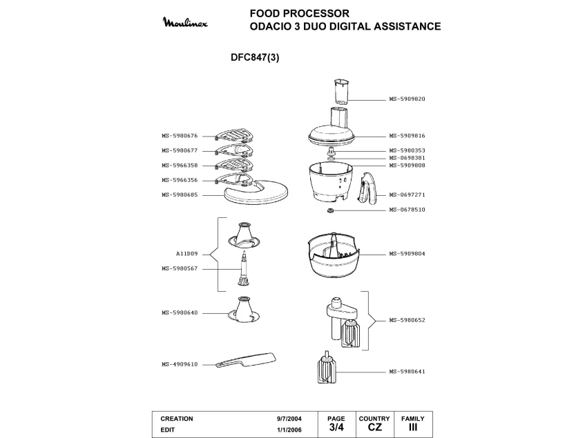 Запчасти для кухонного комбайна Moulinex DFC847(3) (DFC847(3)-3)