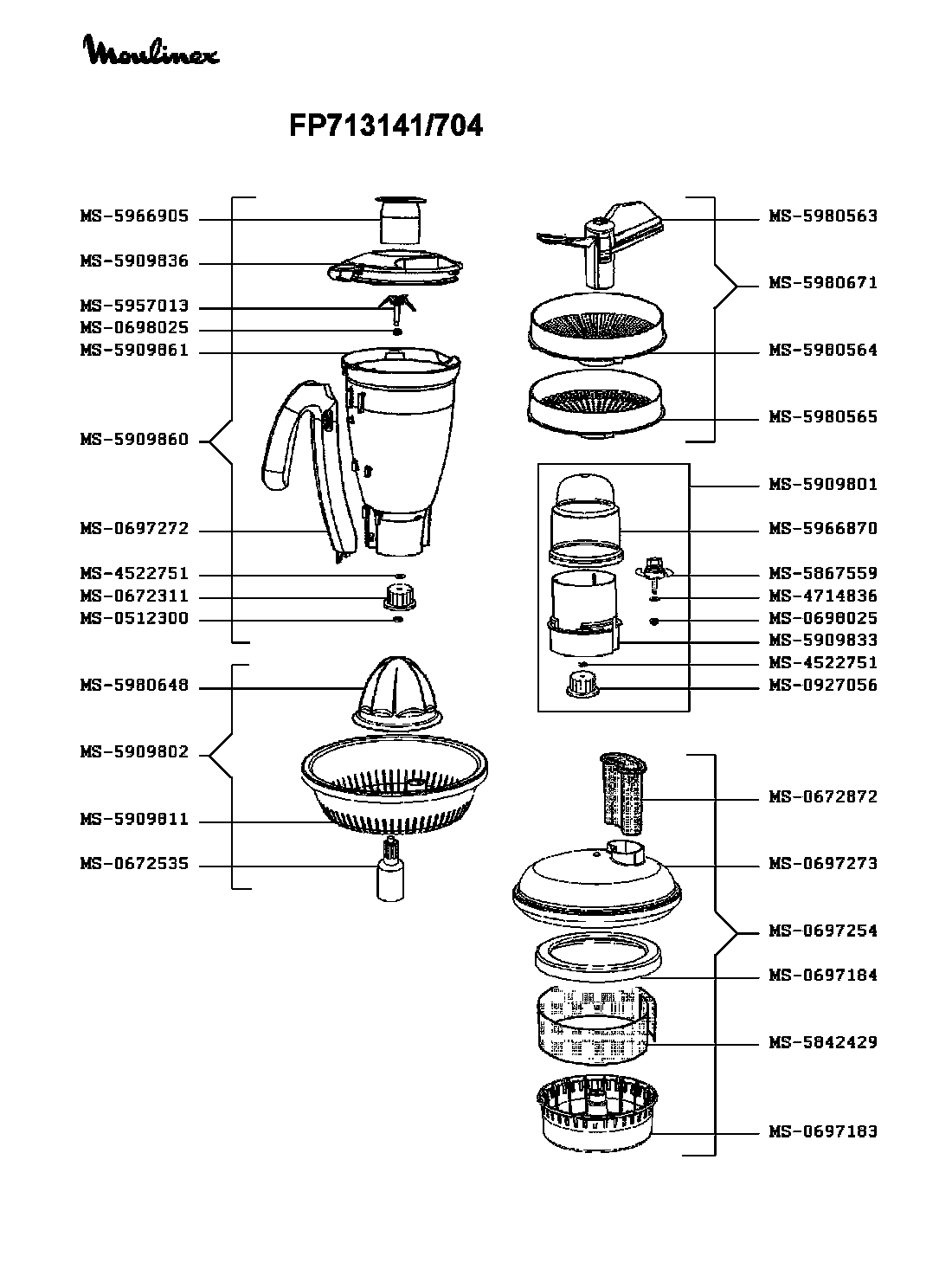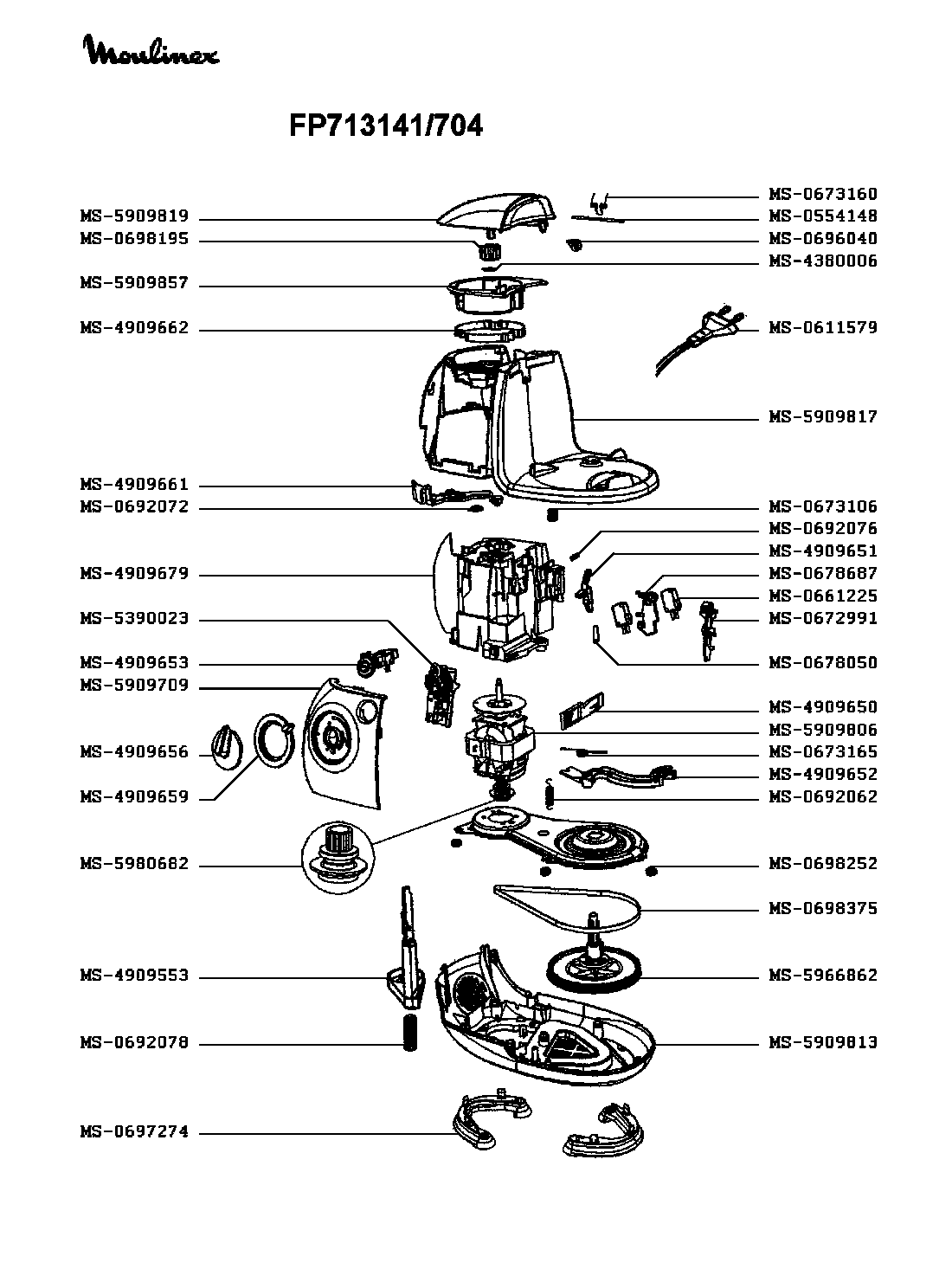 Запчасти для кухонного комбайна Moulinex FP713141/704
