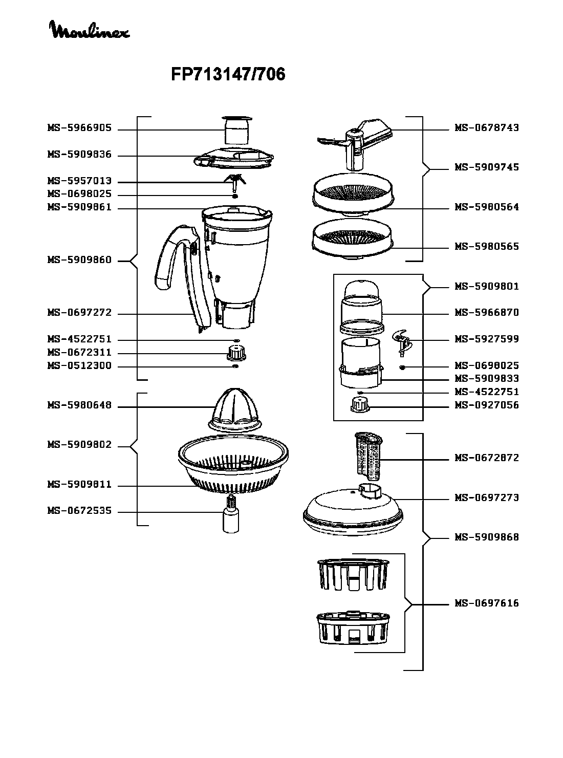 Запчасти для кухонного комбайна Moulinex FP713147/706