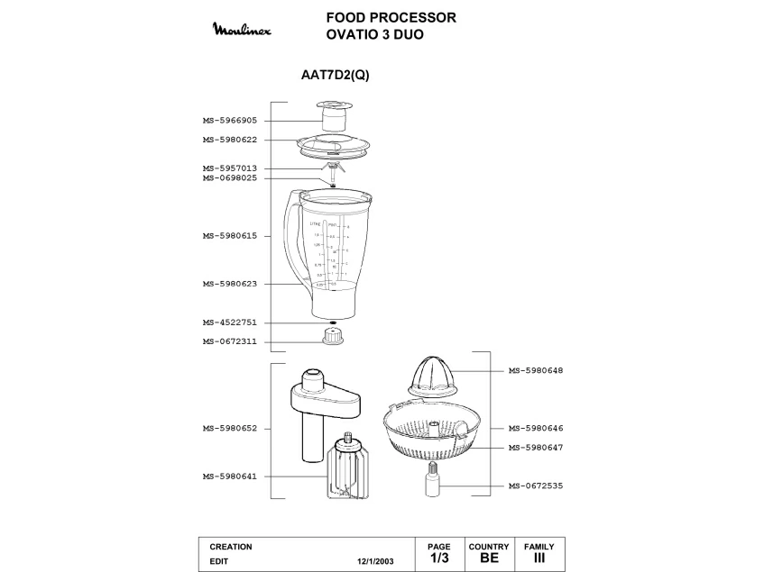 Запчасти для кухонного комбайна Moulinex AAT7D2(Q) (AAT7D2(Q)-1)