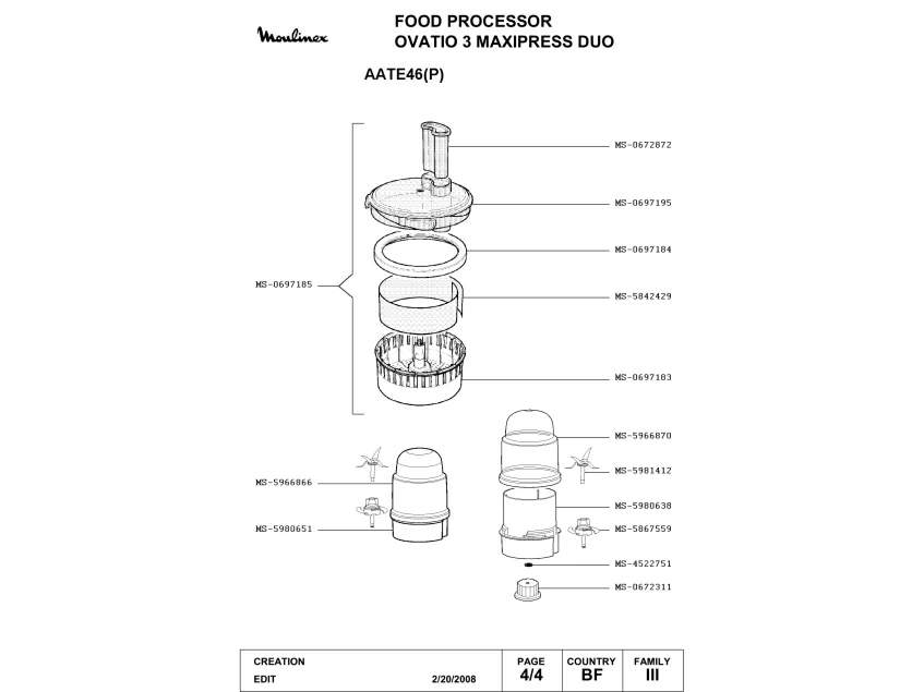 Запчасти для кухонного комбайна Moulinex AATE46(P) (AATE46(P)-4)