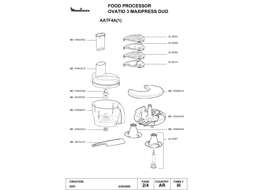 Запчасти для кухонного комбайна Moulinex AATF4A(1) (AATF4A(1)-2)