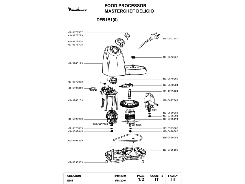 Запчасти для кухонного комбайна Moulinex DFB1B1(0) (DFB1B1(0)-1)