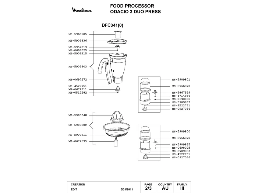 Запчасти для кухонного комбайна Moulinex DFC341(0) (DFC341(0)-2)