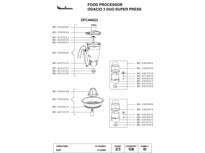 Запчасти для кухонного комбайна Moulinex DFC444(3) (DFC444(3)-2)
