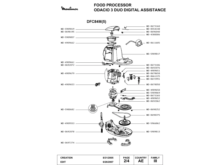 Запчасти для кухонного комбайна Moulinex DFC84M(5) (DFC84M(5)-2)