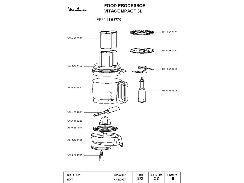 Запчасти для Moulinex FP4111B7/70 (FP4111B7-70-2)