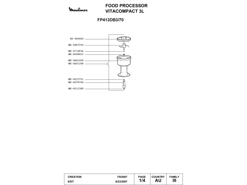 Запчасти для Moulinex FP413DB3/70 (FP413DB3-70-1)