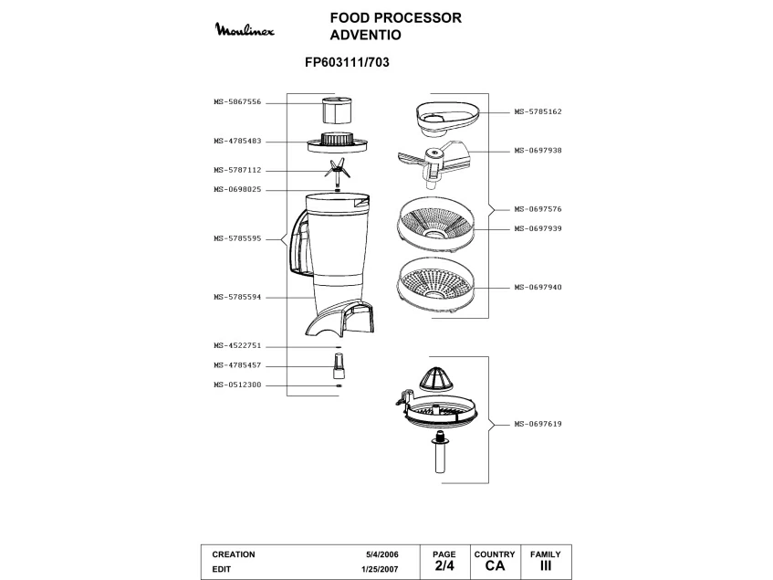 Запчасти для Moulinex FP603111/703 (FP603111-703-2)