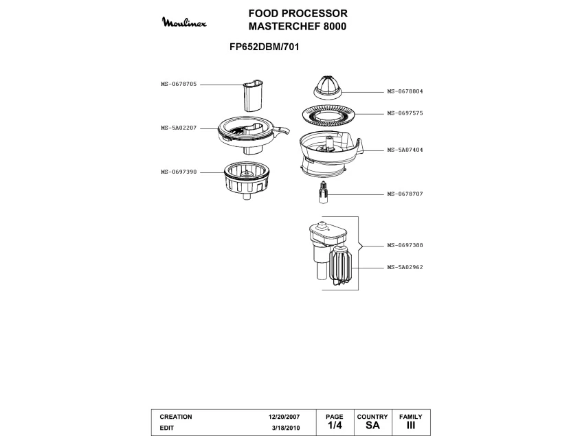 Запчасти для Moulinex FP652DBM/701 (FP652DBM-701-1)