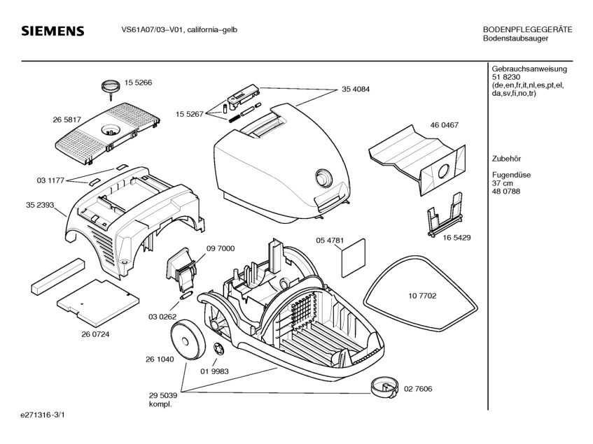 Запчасти для пылесоса Siemens VS61A07/03 (58300000044930_aet_000_a_01)