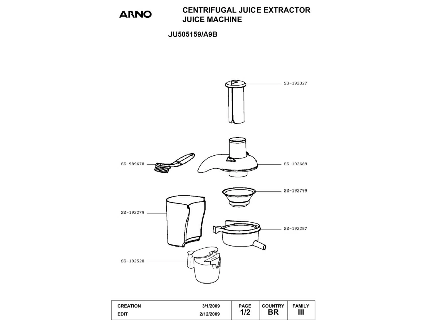 Запчасти для соковыжималки Arno JU505159/A9B (JU505159-A9B)