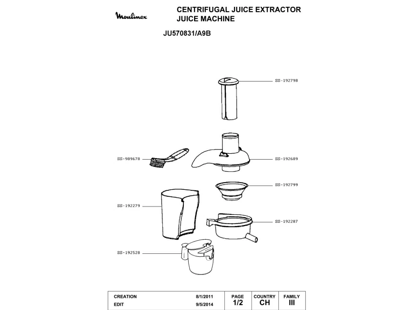 Запчасти для соковыжималки Moulinex JU570831/A9B (JU570831-A9B)