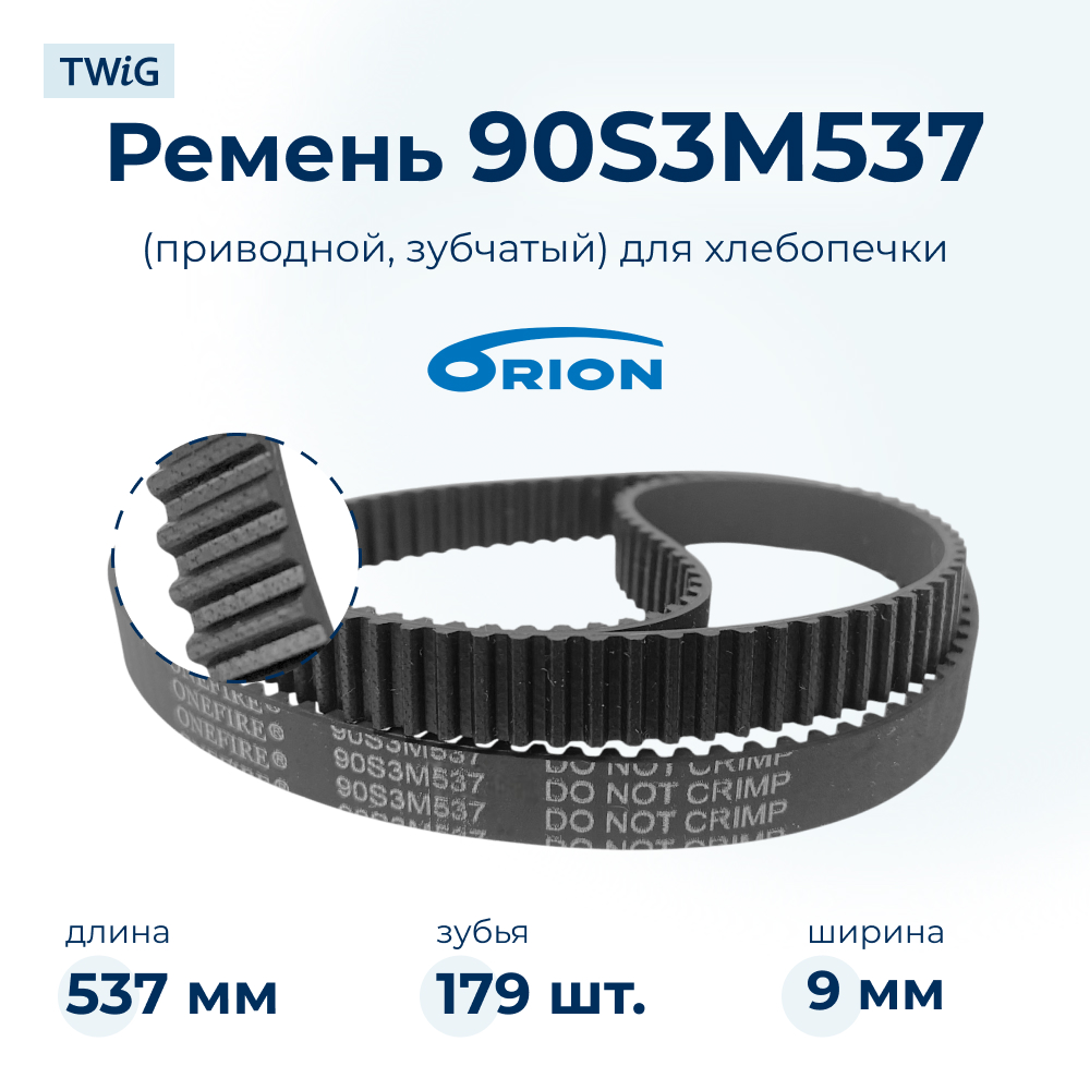 Запчасть выполнена из износостойкой резины и соответствует заводской маркировке 90S3M537. Параметры ремня: длина 537 мм, ширина 9 мм, 179 зубьев (шаг 3 мм).