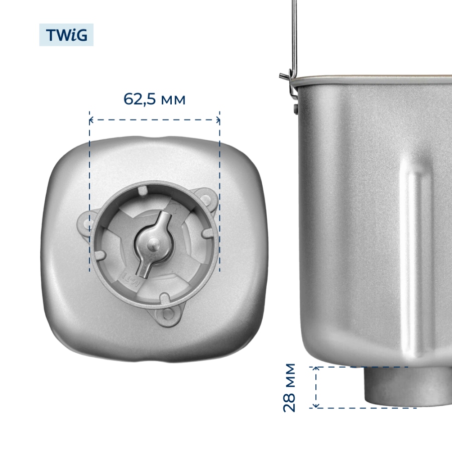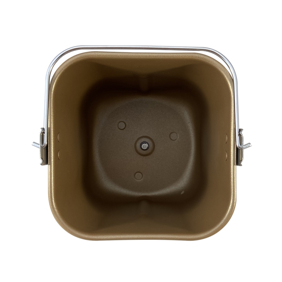Объем формы составляет 3 литра, что позволяет готовить выпечку весом 500 и 750 г. Габариты ведра — 145х145х175 мм. Лопатка для замешивания теста в комплект не входит, поэтому можно использовать уже имеющуюся лопатку.