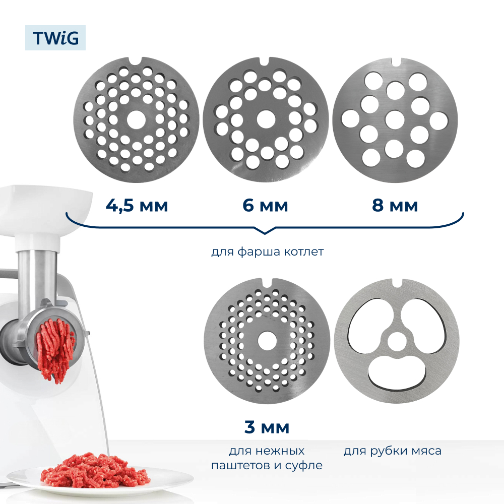 При установке решетка размещается после ножа, что обеспечивает эффективное измельчение и формирование нужной консистенции фарша. Подходит для моделей: Braun G1100, G1300, G1500, G3000, KGZ3, KGZ4, Power Plus 1100, Power Plus 1300, Power Plus 1500.