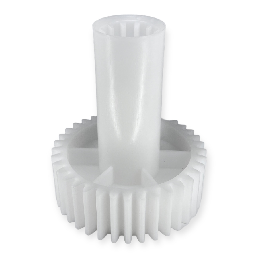 Шестерня выполнена с точными геометрическими параметрами: диаметр 30,5 мм по малому ряду и 77 мм по большому, общая высота 88 мм, высота нижнего зубчатого ряда — 26 мм. Количество зубьев — 12 (внутренний ряд) и 37 (наружный), форма зуба прямая, что обеспечивает надежное зацепление и снижает износ редуктора. Конструкция адаптирована для установки на стандартный вал шнека мясорубки Bosch.