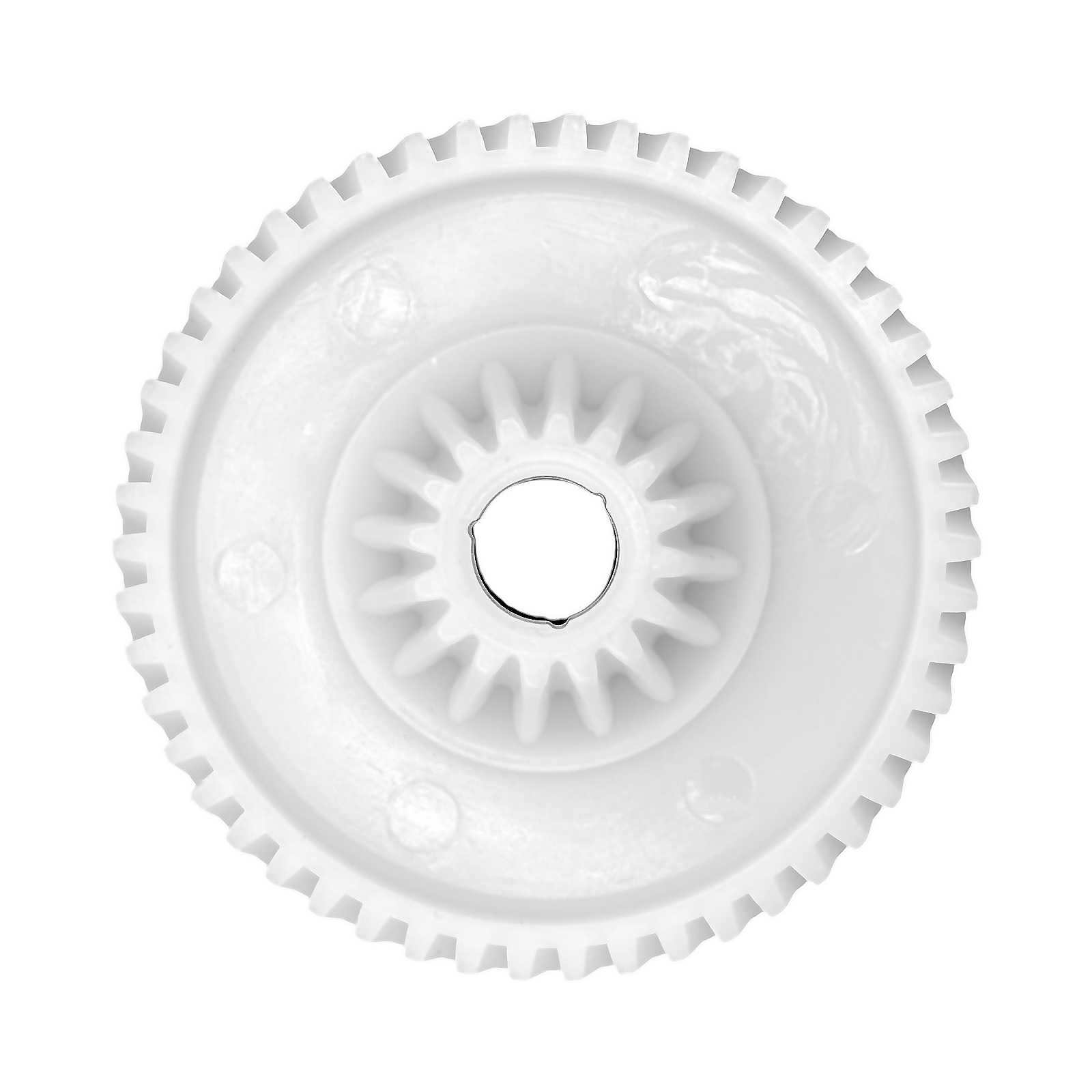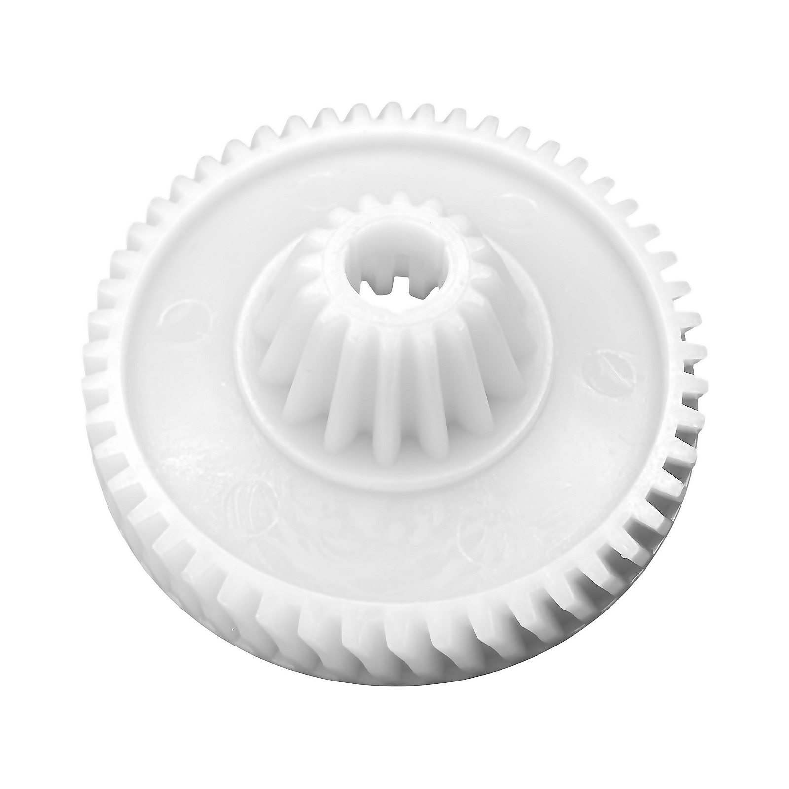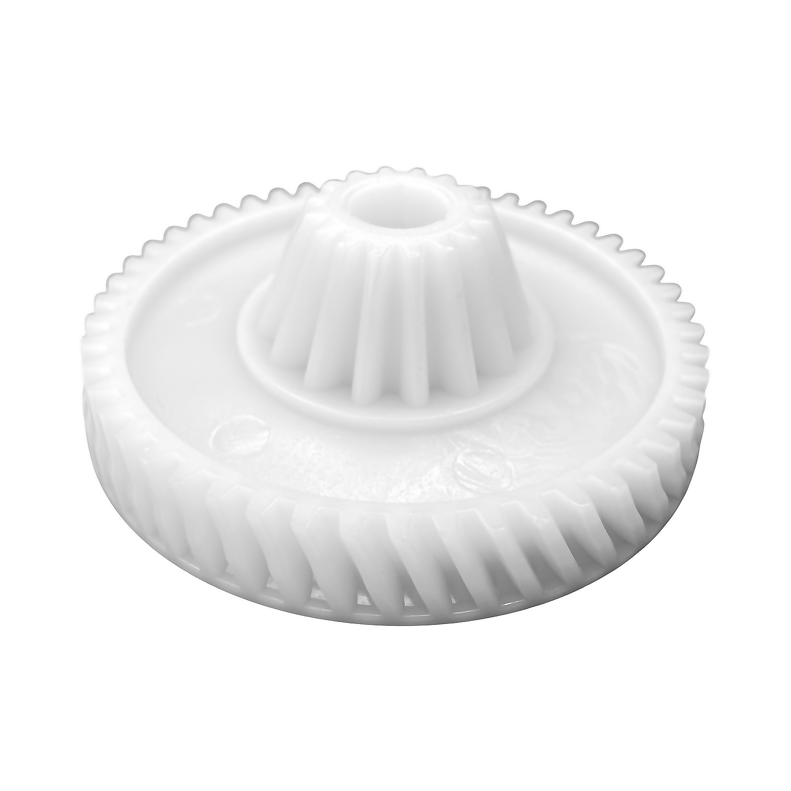 Наружный диаметр составляет 68 мм, высота — 23 мм. Конструкция включает 16 зубьев на малом диаметре и 50 на большом, обеспечивая надежное сцепление и эффективную работу редуктора. Зубья имеют смешанный наклон (прямой/косой), что повышает плавность хода механизма и снижает нагрузку на двигатель.