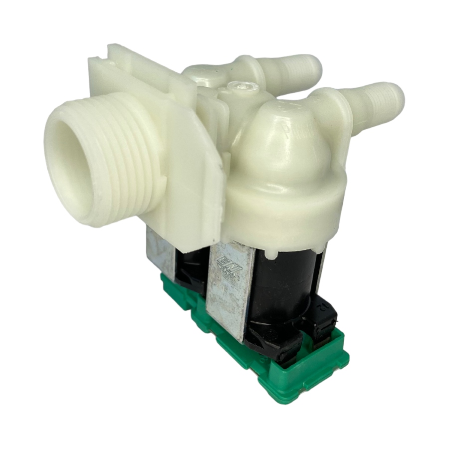 Впускной клапан стиральной машины Bosch/Siemens устроен по тому же принципу, как и в других марках: при подаче сигнала управления заглушка открывается, и вода поступает в барабан. Представленный электроклапан имеет 2 катушки и 180 градусов между входом и выходом. Клеммы для подключения к электросети под фишку. На входе клапана установлена пластмассовая фильтрационная сетка, которая задерживает частицы ржавчины и примеси из водопроводной воды.