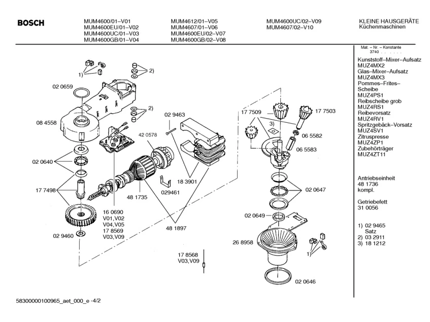 Запчасти для Bosch MUM4600UC/02 (58300000100965_aet_000_e_02)