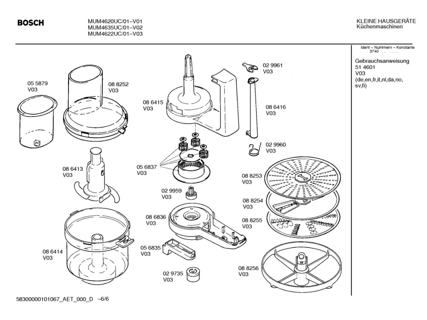 Запчасти для Bosch MUM4620UC/01 (58300000101067_aet_000_d_06)