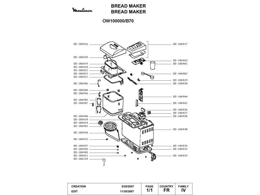 Запчасти для хлебопечки Moulinex OW100000/B70 (OW100000-B70-1)