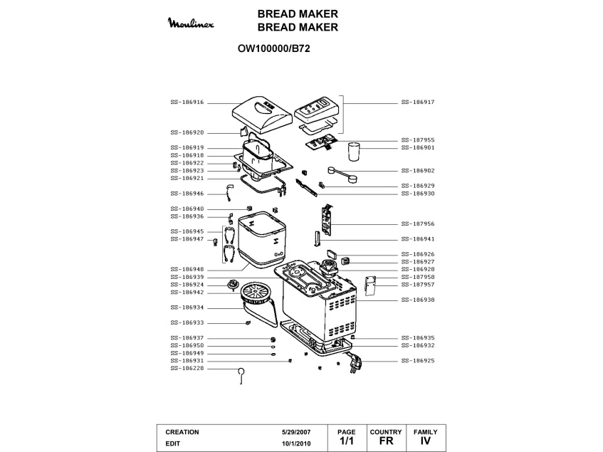 Запчасти для хлебопечки Moulinex OW100000/B72 (OW100000-B72-1)