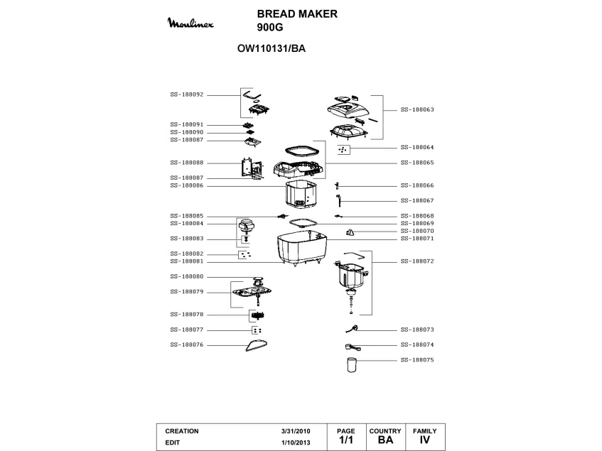 Запчасти для хлебопечки Moulinex OW110131/BA (OW110131-BA-1)