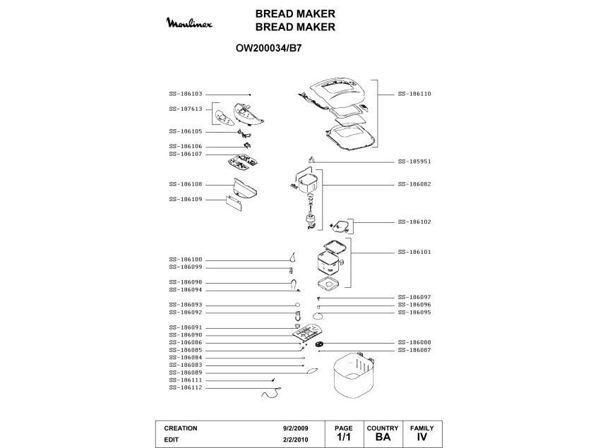 Запчасти для хлебопечки Moulinex OW200034/B7 (OW200034-B7-1)