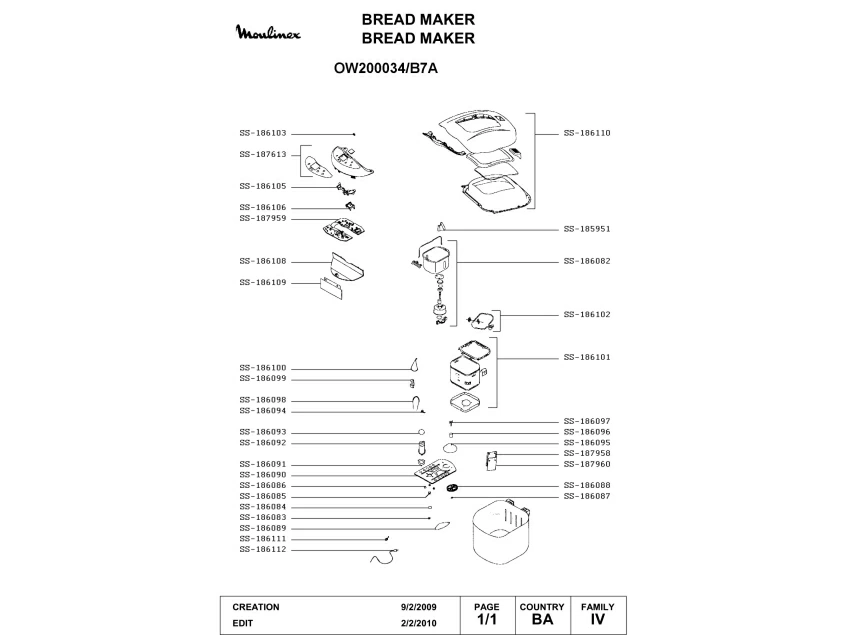 Запчасти для хлебопечки Moulinex OW200034/B7A (OW200034-B7A-1)